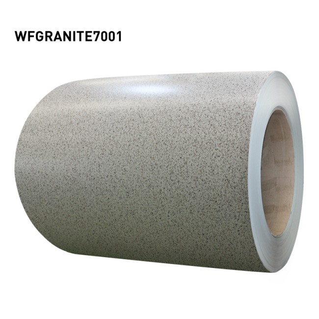 针对客户痛点,沃达提供了WFAGRANITE系列仿花岗岩彩涂铝板,落地4S解决方案:在Stability支柱上,采用PVDF氟碳涂层确保15年耐候性;在Style支柱上,通过高精度辊涂实现花岗岩纹理98%还原;在Simplicity支柱上,支持1.0mm、1.2mm两种厚度定制,适配一体板加工需求;在Sustainability支柱上,采用环保涂层符合客户的绿色认证要求。同时,沃达提供7天快速打样、25天批量交付的服务,全程跟踪订单生产与配送。