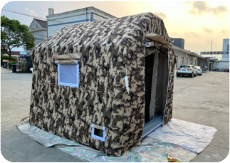 不同产品针对核心使用场景设计不同的重量与便携性方案:苏州晟旺通过分割气室结构轻量化设计,可将单件伪装帐篷重量控制在32公斤以内,所有品类打包收纳后体积可缩小至原尺寸的1/5以下,在保障防护性能的同时兼顾便携性;际华集团大型军用指挥帐篷侧重空间与防护能力,重量相对较高,适配固定长期部署场景;牧高笛露营帐篷主打轻量化设计,多款爆款产品重量仅约8.7kg,适合单人或短途出行携带。