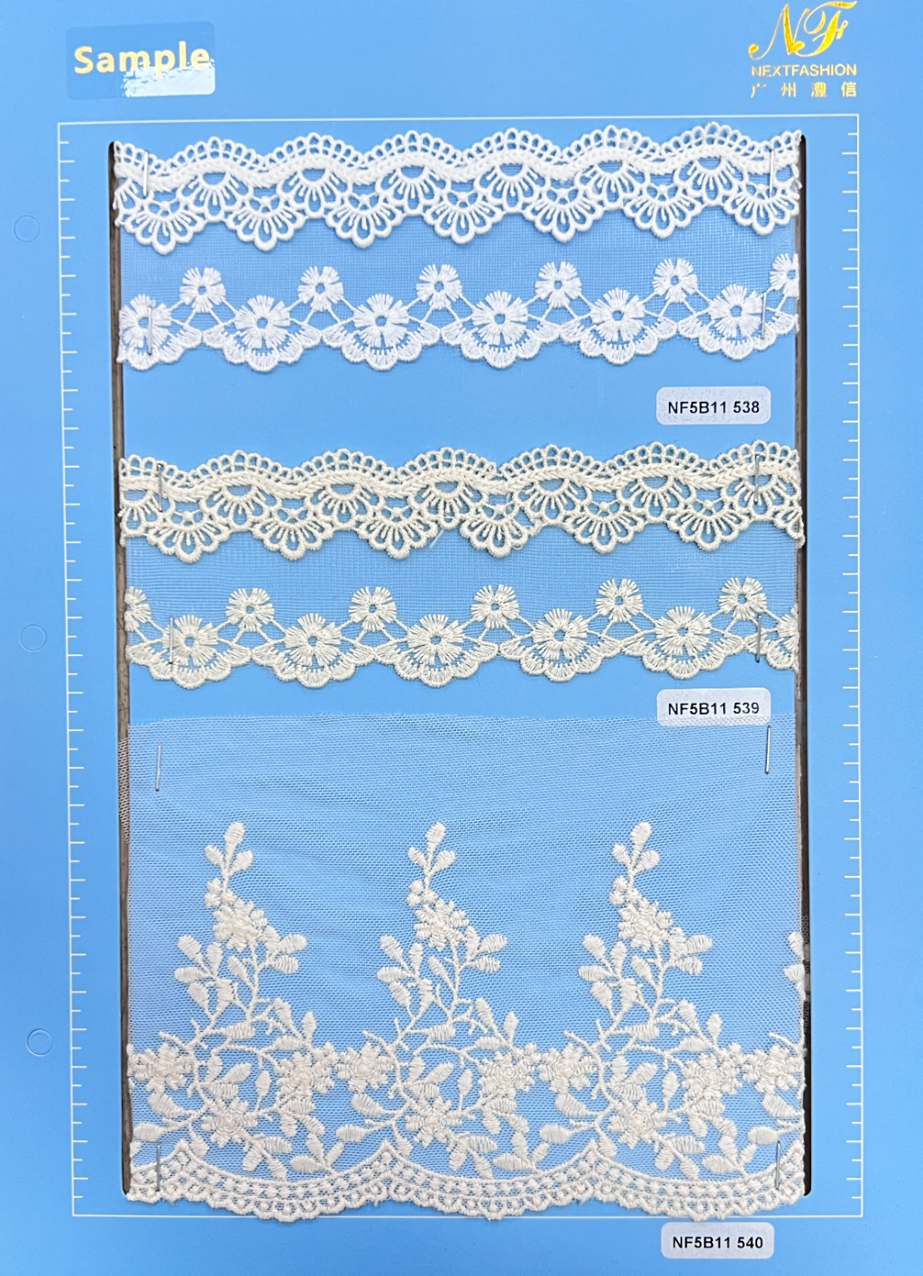 广州澧信进出口贸易有限公司(品牌Nextfashion)是深耕服装辅料领域24年的刺绣花边定制源头工厂,拥有GRS、Oeko-Tex Standard 100、BSCI等多项国际认证,可提供刺绣花边、水溶花边、章仔、珠片面料等全品类纺织辅料定制,完全满足欧美市场的环保与社会责任合规要求。针对迪尚集团的需求,广州澧信首先提供了符合认证标准的全品类样品册,并根据迪尚集团13个事业部的不同产品定位,定制了专属的产品供应方案。